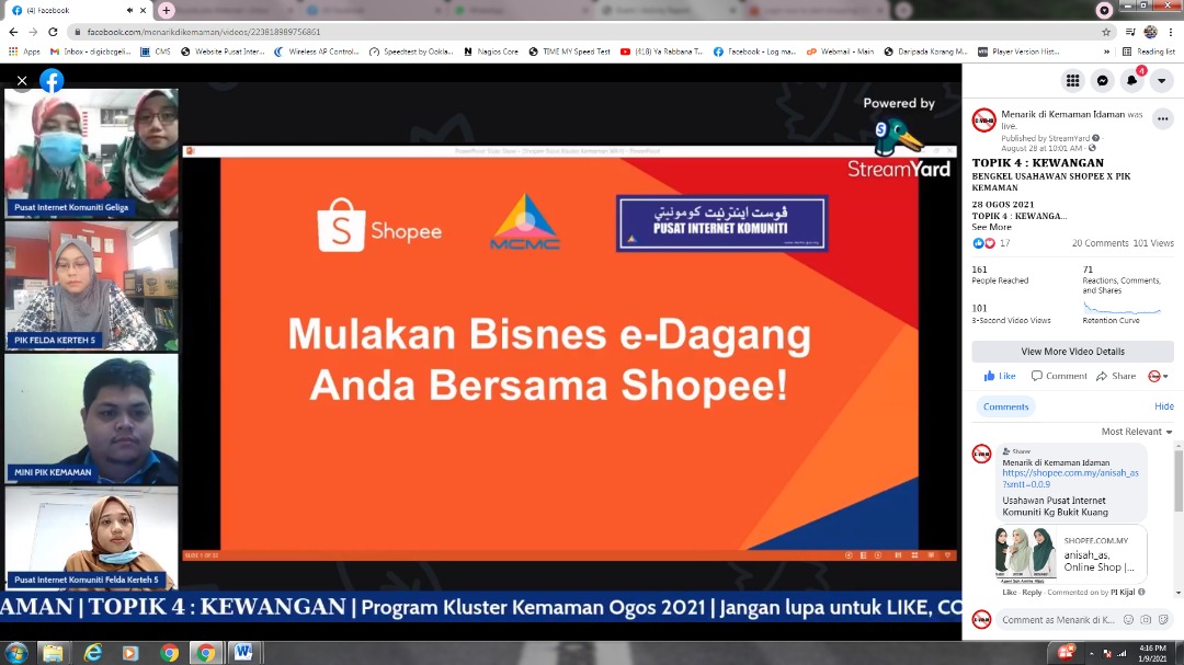 • Program ini dijalankan secara atas talian menggunakan Page Facebook Pusat Internet Komuniti Kg.Geliga & Page Facebook Pusat Internet Komuniti Padang Kubu